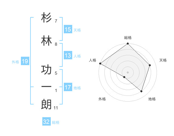 杉林 功一朗さんを姓名の画数から五運を鑑定