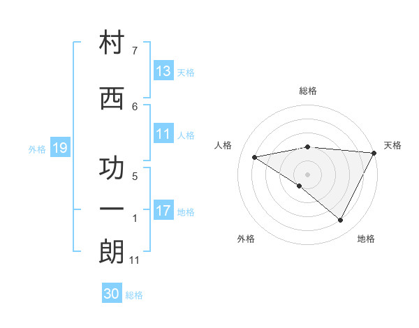 村西 功一朗さんを姓名の画数から五運を鑑定