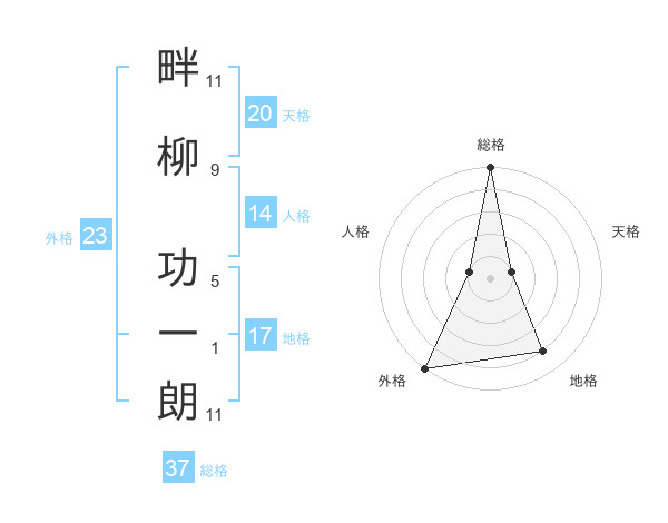 畔柳 功一朗さんを姓名の画数から五運を鑑定