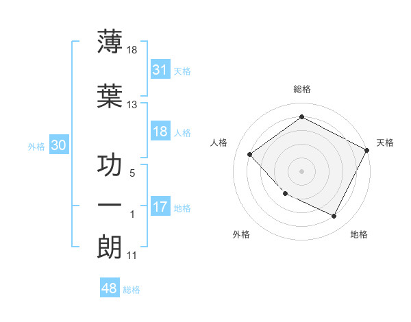 薄葉 功一朗さんを姓名の画数から五運を鑑定