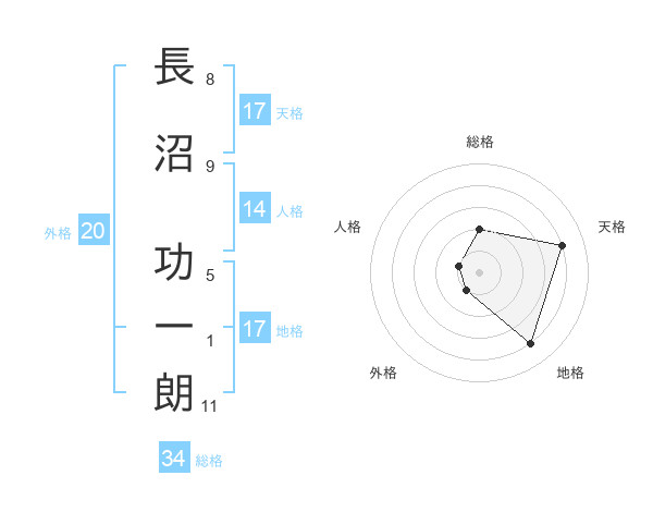長沼 功一朗さんを姓名の画数から五運を鑑定