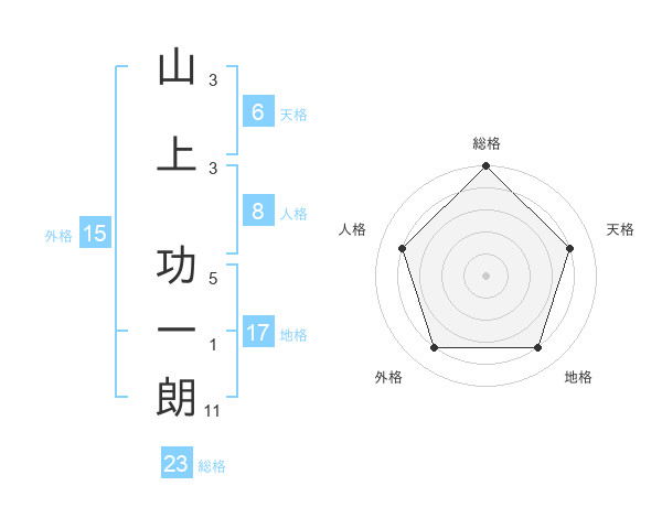 山上 功一朗さんの総格は23画の5点!