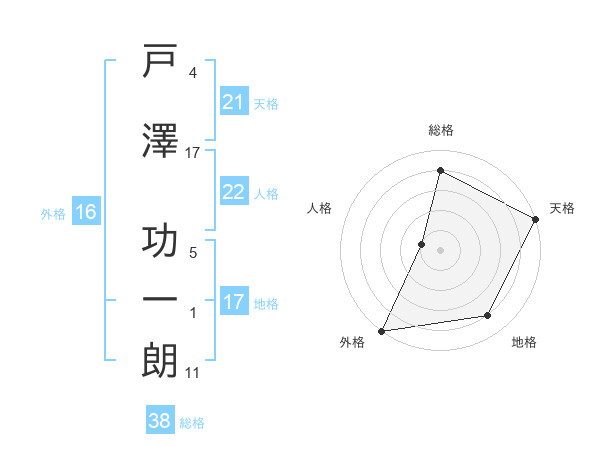 戸澤 功一朗さんの総格は38画の4点!