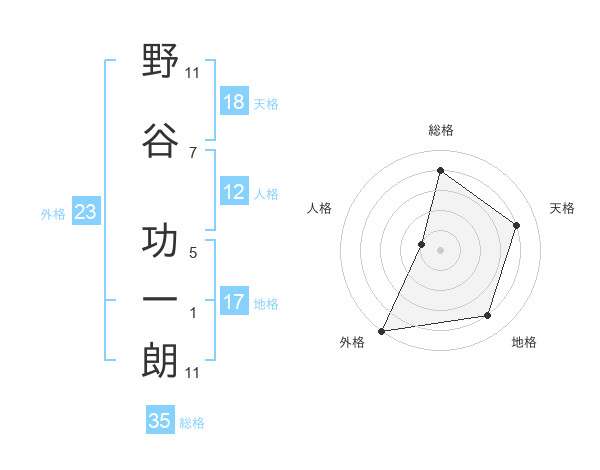 野谷 功一朗さんの総格は35画の4点!
