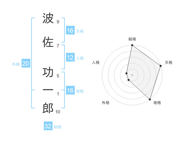 波佐 功一郎さんを姓名の画数から五運を鑑定