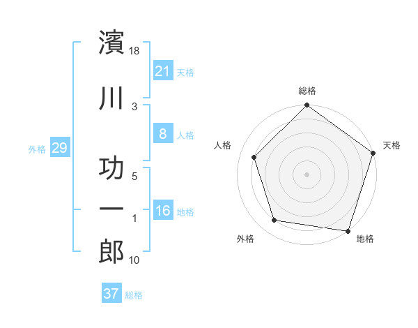 濱川 功一郎さんの総格は37画の5点