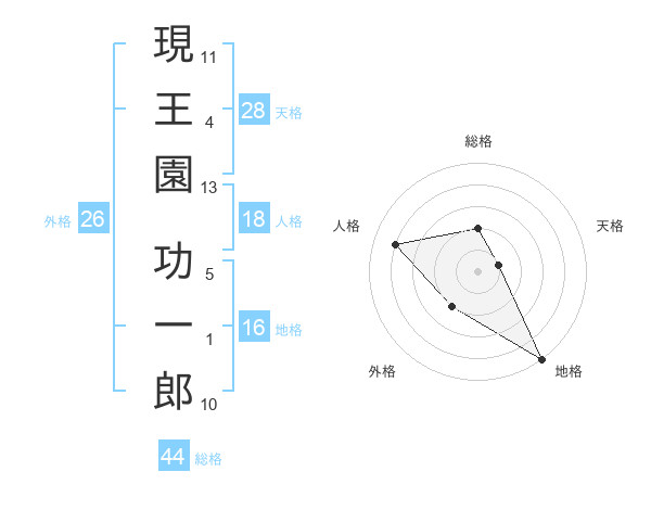現王園 功一郎さんを姓名の画数から五運を鑑定