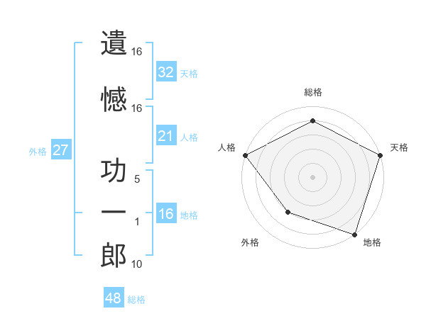遺憾 功一郎さんの天格は32画の5点!