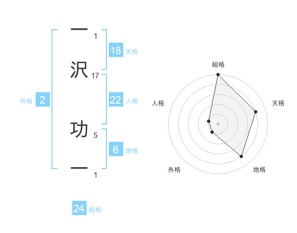 一沢 功一さんの総格は24画の5点!
