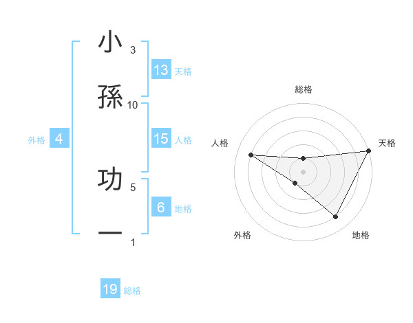 小孫 功一さんの天格は13画の5点!
