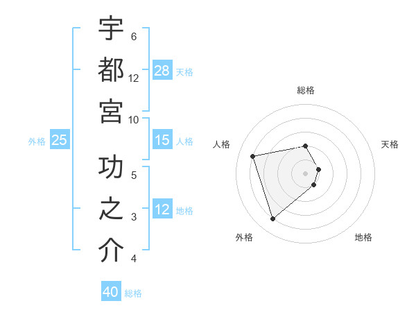 宇都宮 功之介さんを姓名の画数から五運を鑑定