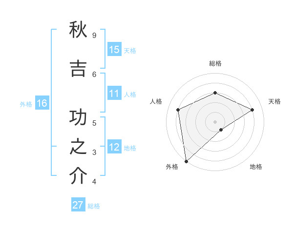 秋吉 功之介さんを姓名の画数から五運を鑑定