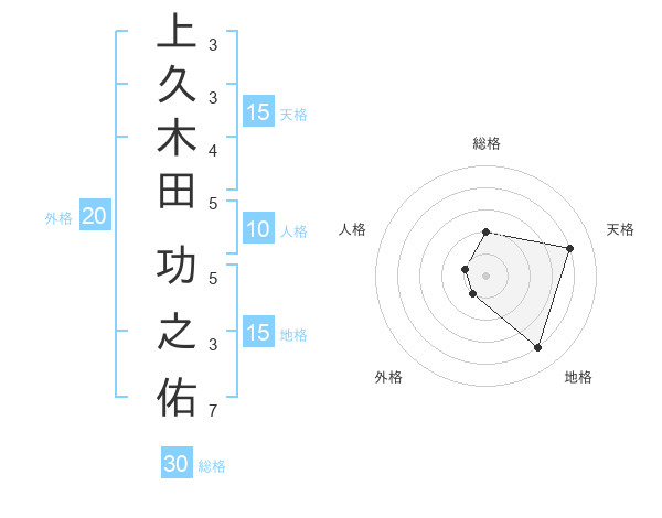 上久木田 功之佑さんを姓名の画数から五運を鑑定
