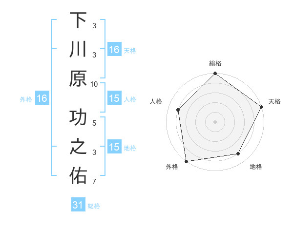 下川原 功之佑さんを姓名の画数から五運を鑑定