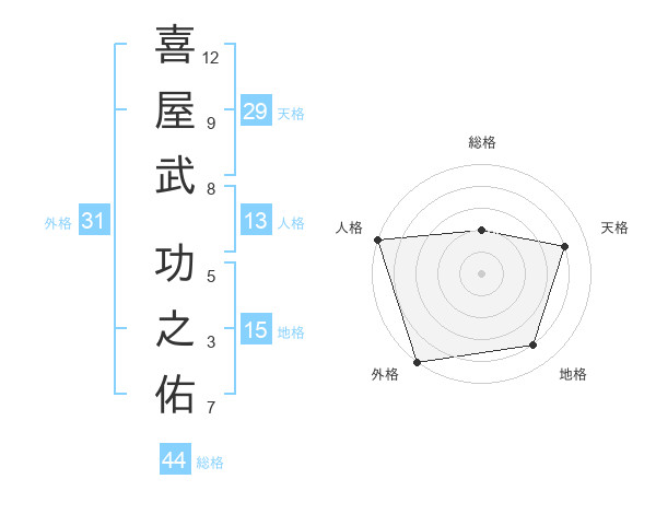 喜屋武 功之佑さんを姓名の画数から五運を鑑定