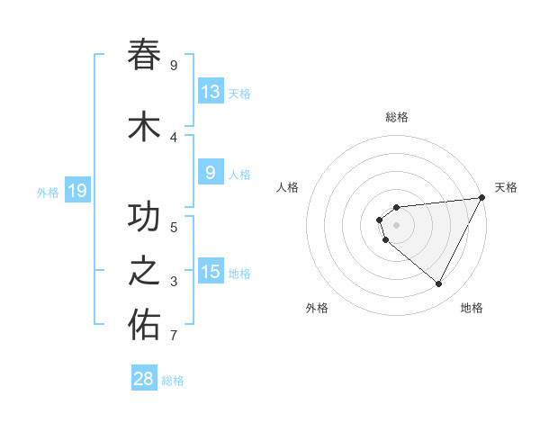 春木 功之佑さんを姓名の画数から五運を鑑定