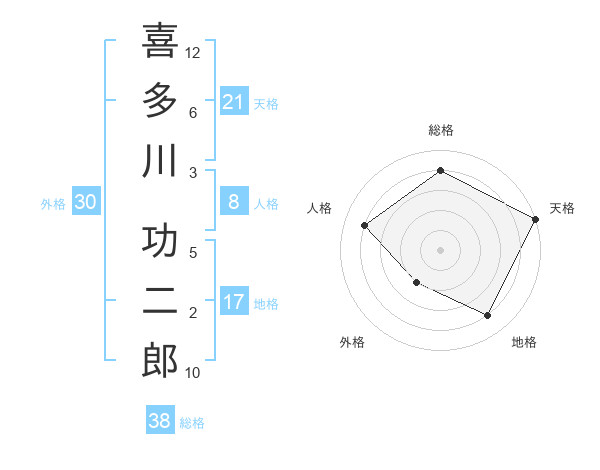 喜多川 功二郎さんの総格は38画の4点!