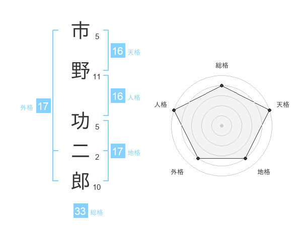 市野 功二郎さんを姓名の画数から五運を鑑定