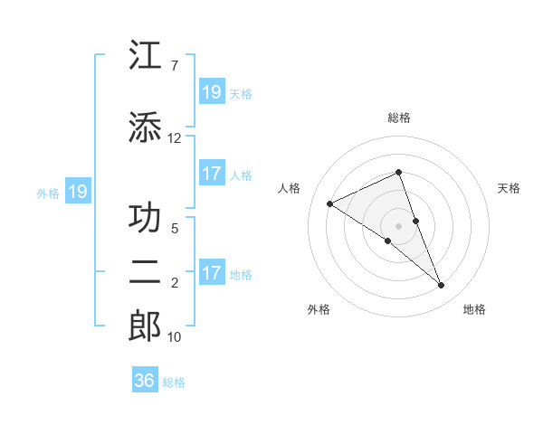江添 功二郎さんの天格は19画の1点!