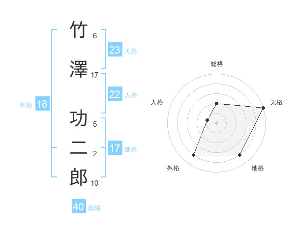竹澤 功二郎さんを姓名の画数から五運を鑑定