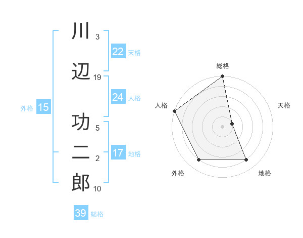 川辺 功二郎さんの総格は39画の5点!