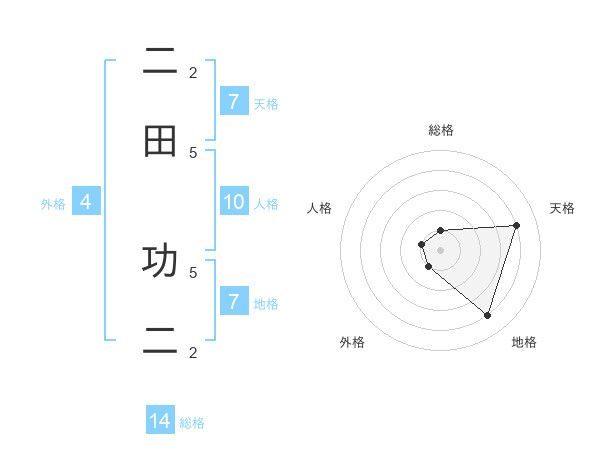 二田 功二さんの地格は7画の4点!