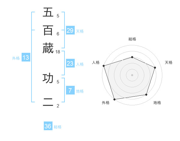 五百蔵 功二さんを姓名の画数から五運を鑑定