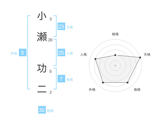 小瀬 功二さんの総格は30画の2点!