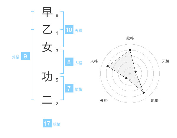 早乙女 功二さんを姓名の画数から五運を鑑定