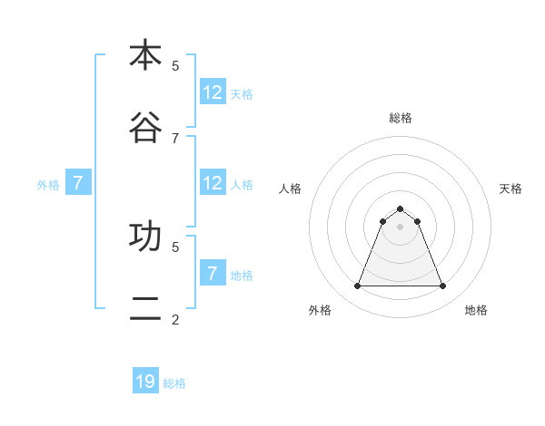 本谷 功二さんの地格は7画の4点!