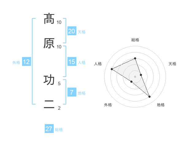 髙原 功二さんの総格は27画の3点!