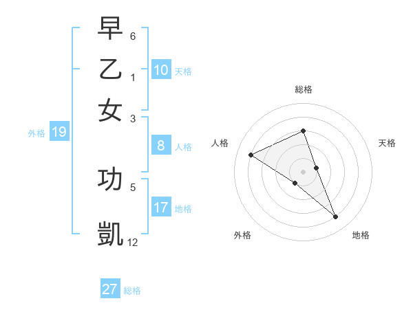 早乙女 功凱さんの総格は27画の3点!