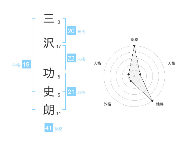 三沢 功史朗さんを姓名の画数から五運を鑑定