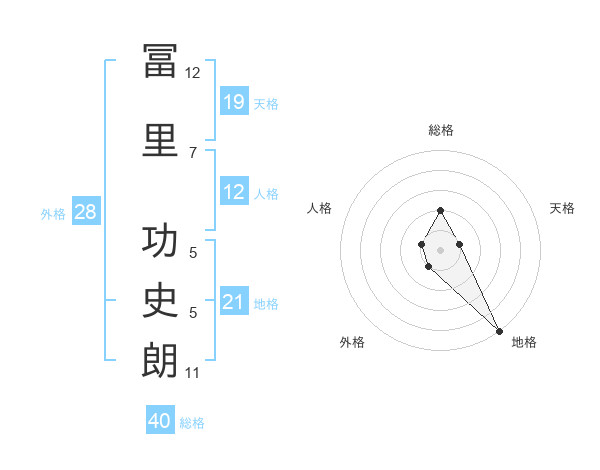 冨里 功史朗さんを姓名の画数から五運を鑑定