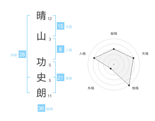 晴山 功史朗さんの地格は21画の5点!