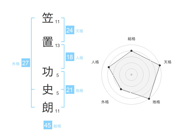 笠置 功史朗さんの総格は45画の4点