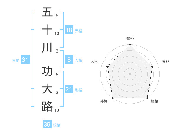 五十川 功大路さんの外格は31画の5点!