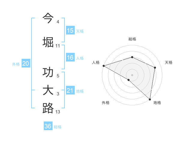 今堀 功大路さんを姓名の画数から五運を鑑定