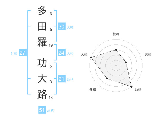 多田羅 功大路さんを姓名の画数から五運を鑑定