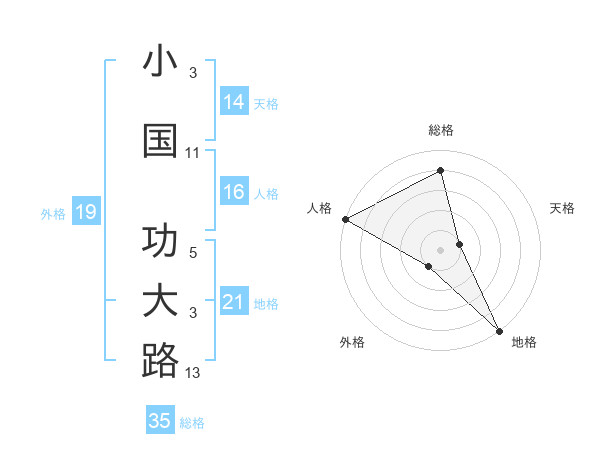 小国 功大路さんの総格は35画の4点!