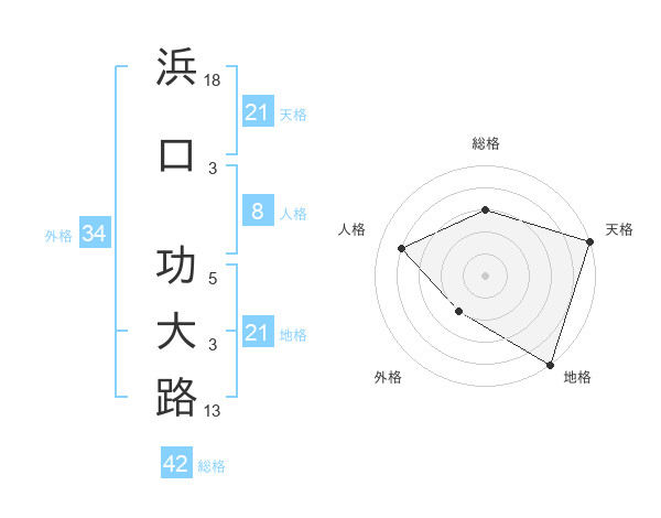 浜口 功大路さんの天格は21画の5点!