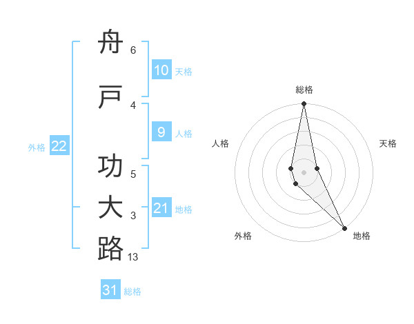 舟戸 功大路さんの総格は31画の5点!