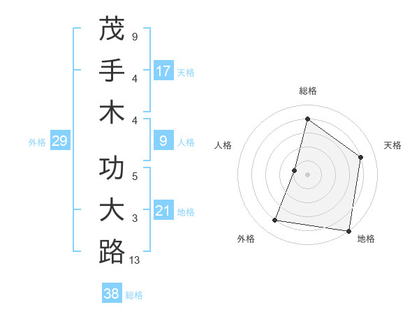 茂手木 功大路さんの総格は38画の4点!
