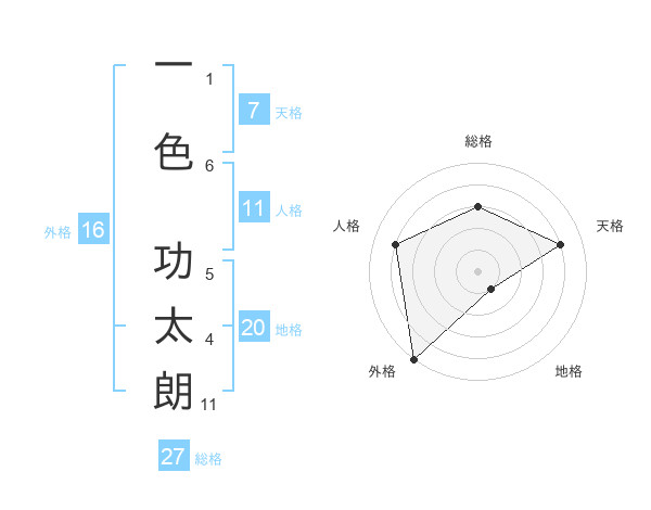一色 功太朗さんの外格は16画の5点!