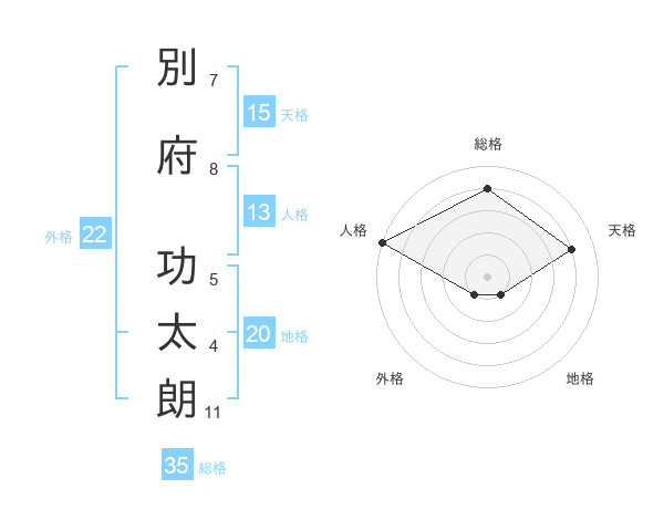 別府 功太朗さんを姓名の画数から五運を鑑定