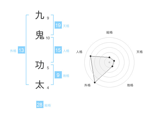 九鬼 功太さんの天格は19画の1点!