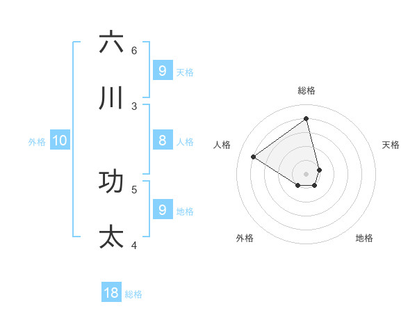 六川 功太さんの総格は18画の4点!