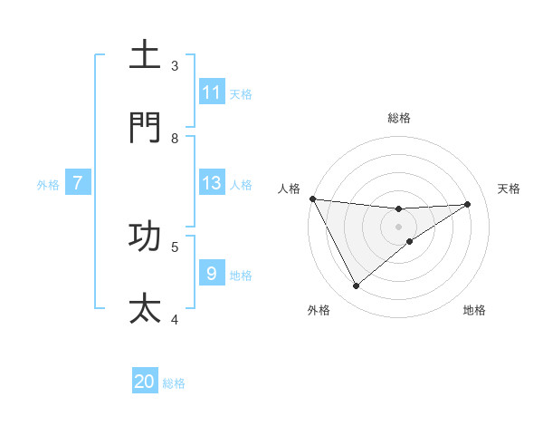 土門 功太さんの総格は20画の1点!