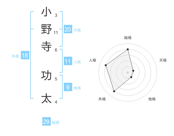 小野寺 功太さんを姓名の画数から五運を鑑定