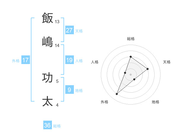 飯嶋 功太さんの外格は17画の4点!